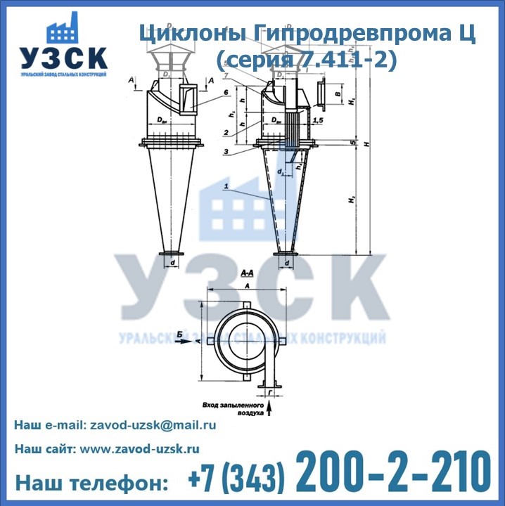 Циклоны Гипродревпрома Ц (серия 7.411-2) высокого качества можно купить в компании «УЗСК» в Шымкенте. Наши специалисты предоставят всю необходимую информацию информацию и помогут с выбором модели циклона. Подробные технические характеристики, конструкцию, параметры, ассортимент и стоимость продукции можно также найти на сайте УЗСК.