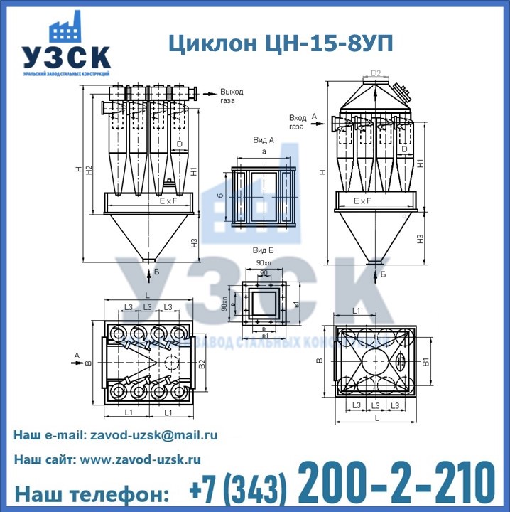 Завод «УЗСК» в Шымкенте предлагает большой выбор циклонов ЦН-15-500×8УП и прочих устройств, полностью укомплектованных и готовых к эксплуатации. Мы гарантируем соответствие оборудования всем требованиям ГОСТ и ТУ, износостойкость и высокую производительность предлагаемого оборудования. Уральский Завод Стальных Конструкций изготавливает и продает надежное, эффективное и производительное оборудование, имеющее длительную гарантию и большой эксплуатационный ресурс. Если требуется изготовить циклон нестандартных размеров, то такой вариант выполнения заказа тоже предусмотрен, так как предприятие имеет собственные производственные площади и надежных поставщиков. На все поставляемое или производимое оборудование имеются чертежи и прочая техническая документация. Заказать и купить циклоны или прочее оборудование высокого качества и по доступной цене можно через наш сайт или по указанному в разделе «Контакты» телефону.