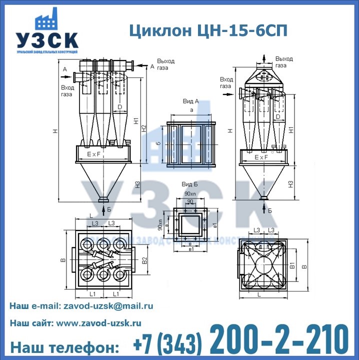 | ЦИКЛОН ЦН-15-800х6СП | 2400 | 2500 | 1450 | 538 | 1420 | 880 | 300 | 440 | 4270 |