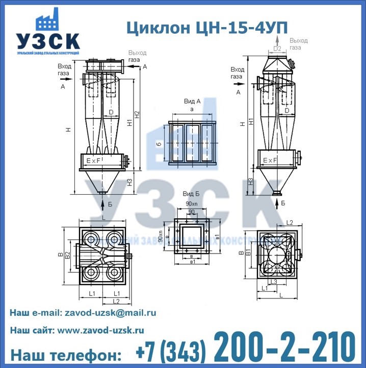 Завод «УЗСК» в Шымкенте предлагает большой выбор циклонов ЦН-15-900×4УП и прочих устройств, полностью укомплектованных и готовых к эксплуатации. Мы гарантируем соответствие оборудования всем требованиям ГОСТ и ТУ, износостойкость и высокую производительность предлагаемого оборудования. Уральский Завод Стальных Конструкций изготавливает и продает надежное, эффективное и производительное оборудование, имеющее длительную гарантию и большой эксплуатационный ресурс. Если требуется изготовить циклон нестандартных размеров, то такой вариант выполнения заказа тоже предусмотрен, так как предприятие имеет собственные производственные площади и надежных поставщиков. На все поставляемое или производимое оборудование имеются чертежи и прочая техническая документация. Заказать и купить циклоны или прочее оборудование высокого качества и по доступной цене можно через наш сайт или по указанному в разделе «Контакты» телефону.
