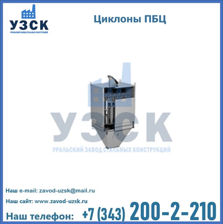 Завод «УЗСК» в Шымкенте предлагает приобрести циклоны ПБЦ и прочие устройства, полностью укомплектованные и готовые к эксплуатации. Мы гарантируем соответствие оборудования всем требованиям ГОСТ и ТУ, износостойкость и высокую производительность предлагаемого оборудования. Уральский Завод Стальных Конструкций изготавливает и продает надежное, эффективное и производительное оборудование, имеющее длительную гарантию и большой эксплуатационный ресурс. Если требуется изготовить циклон нестандартных размеров, то такой вариант выполнения заказа тоже предусмотрен, так как предприятие имеет собственные производственные площади и надежных поставщиков. На все поставляемое или производимое оборудование имеются чертежи и прочая техническая документация. Заказать и купить циклоны или прочее оборудование высокого качества и по доступной цене можно через наш сайт или по указанному в разделе «Контакты» телефону.