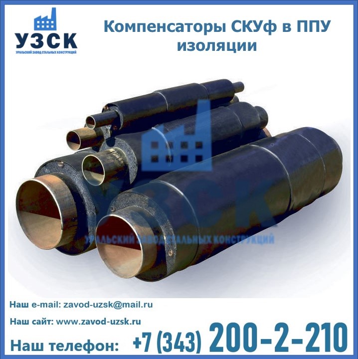 Если трубы для прокладки усилены теплоизоляцией ППУ, то на них допустимо устанавливать только cильфонный компенсатор СКУф в ППУ с такими же размерами теплоизоляционного слоя. На данный момент, такие устройства считаются одними из наиболее надежных, эффективных и долговечных элементов, способных обеспечить бесперебойную работу трубопроводов. На заводе «УЗСК» вы можете купить СКУф ППУ и другие компенсаторы по приемлемой цене, от надежных производителей. УЗСК осуществляет поставки сильфонных компенсаторов СКУ в ППУ любых типоразмеров. Наше предприятие поставляет и производит оборудование, имеющее длительную гарантию и большой эксплуатационный ресурс. Если требуется изготовить нестандартное изделие, то такой вариант выполнения заказа тоже предусмотрен, так как предприятие имеет собственные производственные площади и надежных поставщиков. На все оборудование имеются чертежи и прочая техническая документация. Чтобы заказать сильфонный узел СКУф в ППУ изоляции в Шымкенте необходимо направить запрос через форму онлайн-заказа на сайте или связаться с нашими специалистами по телефонам, указанным в разделе «КОНТАКТЫ .