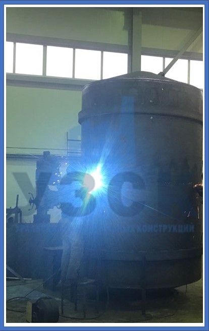 Компания «УЗСК» в Шымкенте специализируется на изготовлении емкостного оборудования. Баки-аккумуляторы объемом до 100 м3 на заводе изготавливаются «под ключ». Производственная линия оснащена вальцовочными станками, стендами автоматической и полуавтоматической двухсторонней сварки обечаек и листов. Днища любой формы центруются на специальных приспособлениях, для точной вварки в цилиндр.